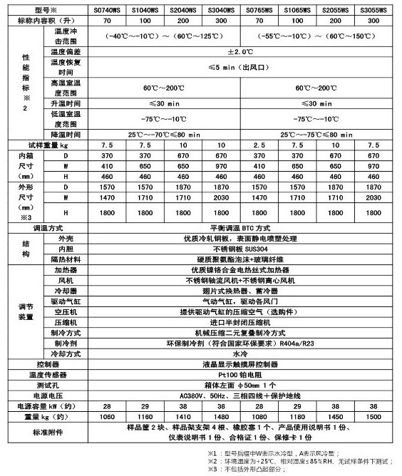 MC028系列溫度沖擊試驗箱  一、產(chǎn)品簡介 用途:適用于對電工、電子和其他軍用設(shè)備在周圍大氣溫度急劇變化條件下的適應(yīng)性試驗。 特點: 1.充分吸收國外同類產(chǎn)品的優(yōu)點,采用兩箱式上下結(jié)構(gòu),上箱體為高溫箱,下箱體為低溫箱。也可根據(jù)用戶要求設(shè)計,制造左、右結(jié)構(gòu)的兩箱式溫度沖擊試驗箱。也可以根據(jù)用戶要求采用單相式(或三箱式)結(jié)構(gòu)設(shè)計。 2.觸摸屏+PLC可編程邏輯控制器,RS485接口。 3.有工作室超溫、壓縮機過載、超壓、油壓超壓、風(fēng)機過載、缺相、壓縮機延時等保護(hù)功能,還有若干用戶選配的安全保護(hù)功能,如風(fēng)速過低,大門未關(guān)閉等等。 4.可選配遠(yuǎn)程監(jiān)控計算機及軟件,上位機實行冗余設(shè)計,可連接PC電腦,也可連接觸摸屏控制器。上位機關(guān)機不影響系統(tǒng)控制。 二、技術(shù)參數(shù):