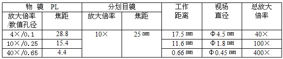 1. 物、目鏡放大倍率 (物鏡也可選其他倍率:5×; 20×; 25×; 60×; 100×)